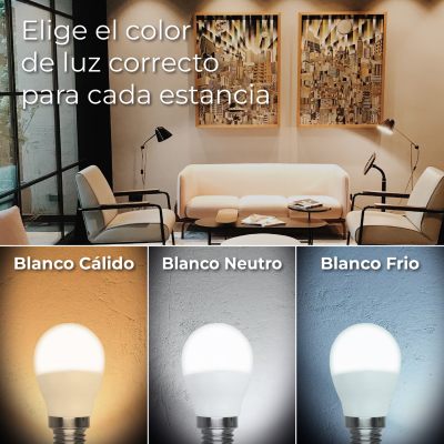 Disponível em 3 tipos de temperaturas, proporcionando diferentes tons de luz. Branco quente 3000K, Branco Neutro 4500K e Branco Frio 6500K.
