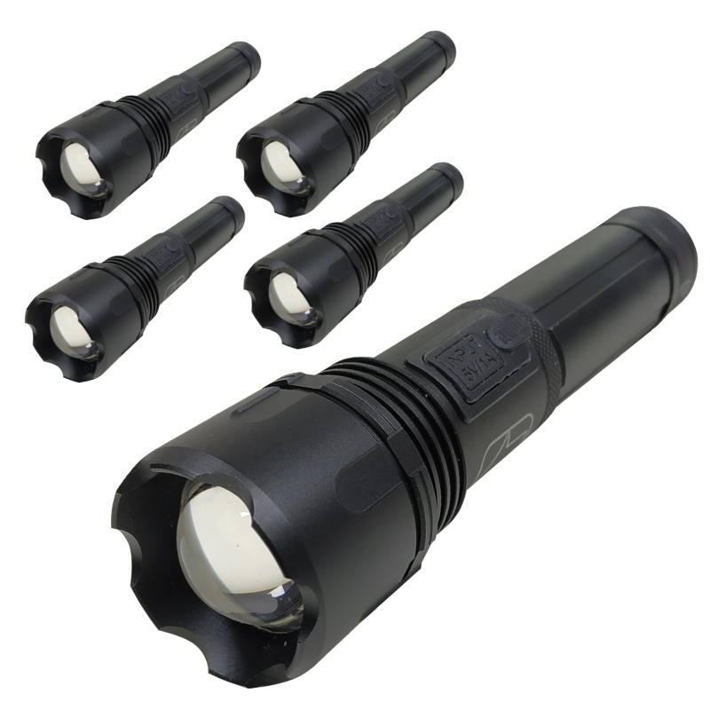 Lanterna LED recarregável USB com 1000 lúmenes. A inclinação convexa no interior da lanterna oferece maior brilho do que as lâmpadas LED T6 convencionais. IPX4 nível impermeável, a lanterna pode funcionar perfeitamente em dias chuvosos, mas será danificado se colocado diretamente na água. A lanterna permite variar o foco e o feixe de inundação graças ao seu zoom. Ferramenta perfeita para trabalho, camping, caminhadas, ciclismo, atividades ao ar livre, etc. Flash e SOS para situações de emergência e segurança. Inclui 4 luzes que indicam a carga restante.