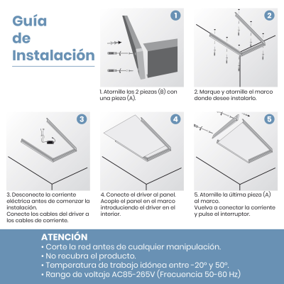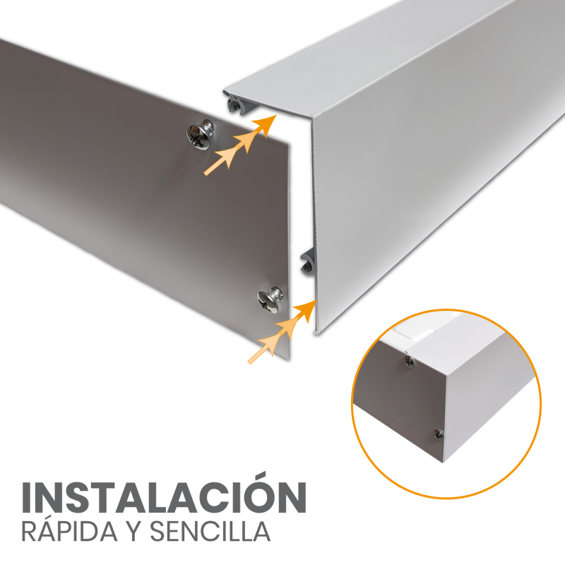 Por outro lado, o suporte é fabricado em alumínio de alta qualidade, o que garante a robustez da estrutura e favorece a longevidade do produto. O seu design e acabamento lacado a branco permite-lhe encaixar perfeitamente com o painel LED, ficando perfeitamente integrado e formando uma unidade única.