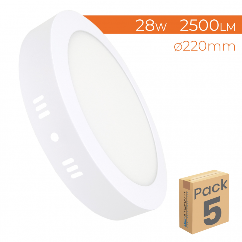 Este Plafon LED Circular de superfície de 28W tem acabamentos perfeitos juntamente com um design inovador e moderno. Entre as suas principais características estão o seu difusor opal, que impede que o deslumbramento ocorra e não perturbe os olhos, bem como uma correta distribuição da luz com um angulo de abertura de 120º e seus 2500 lúmens. O seu alto índice de reprodução cromatica+80 CRI garante a reprodução correta das cores.