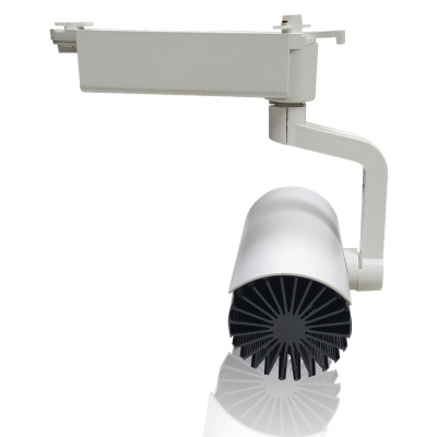 Rail-Track Light 30w, halogéneo equivalente a 300w, 2900Lm, branco neutro 4500K. Poupe na sua conta de electricidade. Substitua as lâmpadas de halogéneo de 300W por este LED de 18W poupando mais de 85%. Ideal para iluminação focalizada. Tem um feixe de 15 graus que lhe permitirá acentuar a iluminação de locais específicos. Adaptável. Pode alterar a orientação da luz de acordo com os requisitos da montra da loja ou das áreas da casa. Tipo de LED: Bridgelux de alta potência. CRI: 80 Voltagem de entrada: AC85-265V 50-60Hz.  Base da lâmpada: conector de 2 fases. Material: alumínio lacado branco CE ROSH. Acessório de instalação: Para instalar a luz é necessário um carril (não incluído).